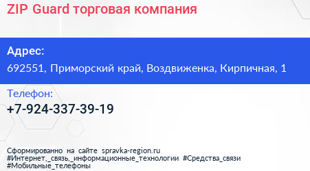 ZIP-Guard, торговая компания по адресу 692551, Приморский край, Воздвиженка, Кирпичная, 1 в дальнейшем Организация, размещена в следующих категориях: