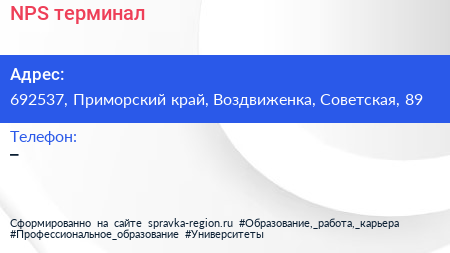 NPS, терминал по адресу 692537, Приморский край, Воздвиженка, Советская, 89 в дальнейшем Организация, размещена в следующих категориях: