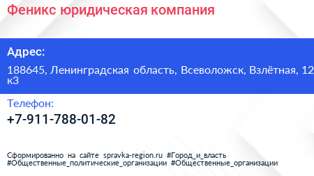 Феникс, юридическая компания по адресу 188645, Ленинградская область, Всеволожск, Взлётная, 12 к3 в дальнейшем Организация, размещена в следующих категориях: