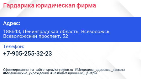 Гардарика, юридическая фирма по адресу 188643, Ленинградская область, Всеволожск, Всеволожский проспект, 52 в дальнейшем Организация, размещена в следующих категориях: