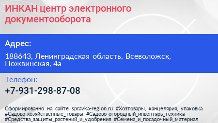ИНКАН, центр электронного документооборота по адресу 188643, Ленинградская область, Всеволожск, Пожвинская, 4а в дальнейшем Организация, размещена в следующих категориях: