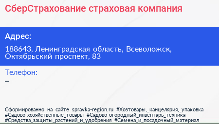 СберСтрахование, страховая компания по адресу 188643, Ленинградская область, Всеволожск, Октябрьский проспект, 83 в дальнейшем Организация, размещена в следующих категориях: