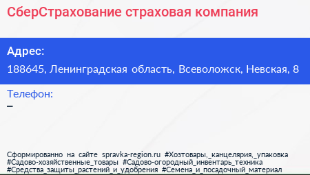 СберСтрахование, страховая компания по адресу 188645, Ленинградская область, Всеволожск, Невская, 8 в дальнейшем Организация, размещена в следующих категориях: