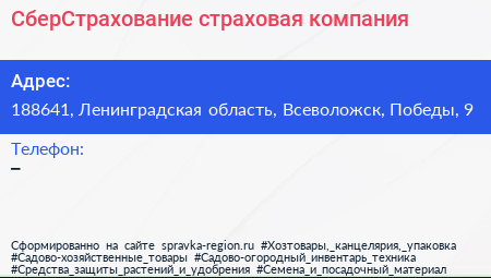 СберСтрахование, страховая компания по адресу 188641, Ленинградская область, Всеволожск, Победы, 9 в дальнейшем Организация, размещена в следующих категориях: