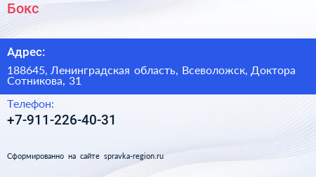 Бокс по адресу 188645, Ленинградская область, Всеволожск, Доктора Сотникова, 31 в дальнейшем Организация, размещена в следующих категориях:
