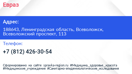 Евраз по адресу 188643, Ленинградская область, Всеволожск, Всеволожский проспект, 113 в дальнейшем Организация, размещена в следующих категориях: