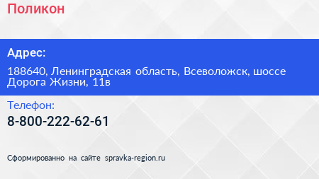 Поликон по адресу 188640, Ленинградская область, Всеволожск, шоссе Дорога Жизни, 11в в дальнейшем Организация, размещена в следующих категориях: