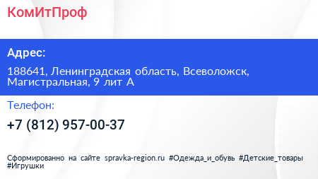 КомИтПроф по адресу 188641, Ленинградская область, Всеволожск, Магистральная, 9 лит А в дальнейшем Организация, размещена в следующих категориях: