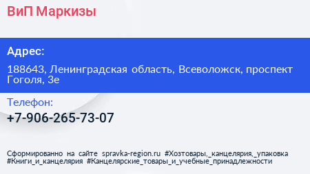 ВиП Маркизы по адресу 188643, Ленинградская область, Всеволожск, проспект Гоголя, 3е в дальнейшем Организация, размещена в следующих категориях: