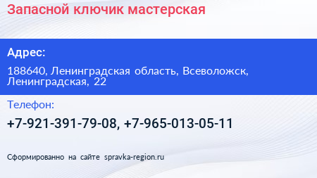 Запасной ключик, мастерская по адресу 188640, Ленинградская область, Всеволожск, Ленинградская, 22 в дальнейшем Организация, размещена в следующих категориях: