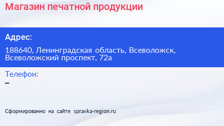 Магазин печатной продукции по адресу 188640, Ленинградская область, Всеволожск, Всеволожский проспект, 72а в дальнейшем Организация, размещена в следующих категориях: