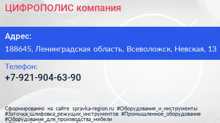 ЦИФРОПОЛИС, компания по адресу 188645, Ленинградская область, Всеволожск, Невская, 13 в дальнейшем Организация, размещена в следующих категориях: