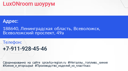 LuxONroom, шоурум по адресу 188640, Ленинградская область, Всеволожск, Всеволожский проспект, 49а в дальнейшем Организация, размещена в следующих категориях: