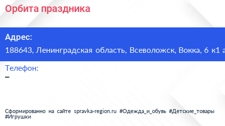 Орбита праздника по адресу 188643, Ленинградская область, Всеволожск, Вокка, 6 к1 а в дальнейшем Организация, размещена в следующих категориях: