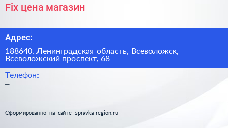 Fix цена, магазин по адресу 188640, Ленинградская область, Всеволожск, Всеволожский проспект, 68 в дальнейшем Организация, размещена в следующих категориях: