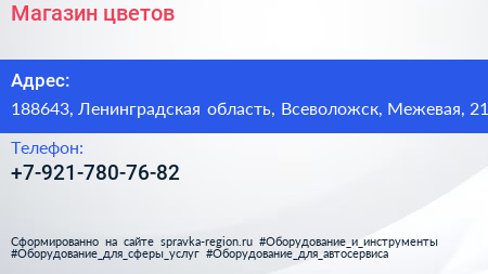Магазин цветов по адресу 188643, Ленинградская область, Всеволожск, Межевая, 21 в дальнейшем Организация, размещена в следующих категориях:
