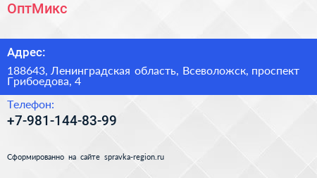 ОптМикс по адресу 188643, Ленинградская область, Всеволожск, проспект Грибоедова, 4 в дальнейшем Организация, размещена в следующих категориях: