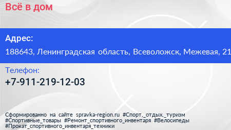 Всё в дом по адресу 188643, Ленинградская область, Всеволожск, Межевая, 21 в дальнейшем Организация, размещена в следующих категориях: