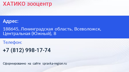 ХАТИКО, зооцентр по адресу 188645, Ленинградская область, Всеволожск, Центральная (Южный), 8 в дальнейшем Организация, размещена в следующих категориях: