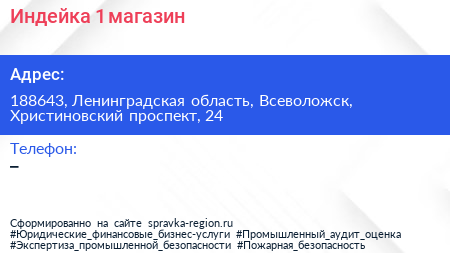 Индейка №1, магазин по адресу 188643, Ленинградская область, Всеволожск, Христиновский проспект, 24 в дальнейшем Организация, размещена в следующих категориях: