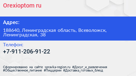 Orexioptom.ru по адресу 188640, Ленинградская область, Всеволожск, Ленинградская, 38 в дальнейшем Организация, размещена в следующих категориях: