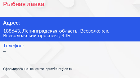 Рыбная лавка по адресу 188643, Ленинградская область, Всеволожск, Всеволожский проспект, 43Б в дальнейшем Организация, размещена в следующих категориях: