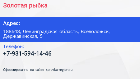 Золотая рыбка по адресу 188643, Ленинградская область, Всеволожск, Державинская, 5 в дальнейшем Организация, размещена в следующих категориях: