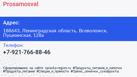 Prosamosval по адресу 188643, Ленинградская область, Всеволожск, Пушкинская, 128а в дальнейшем Организация, размещена в следующих категориях: