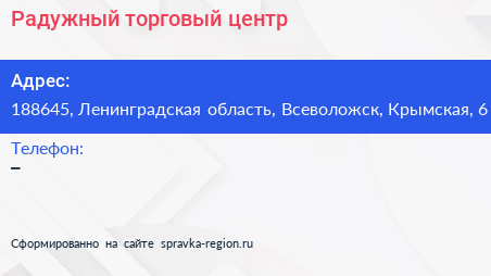 Радужный, торговый центр по адресу 188645, Ленинградская область, Всеволожск, Крымская, 6 в дальнейшем Организация, размещена в следующих категориях: