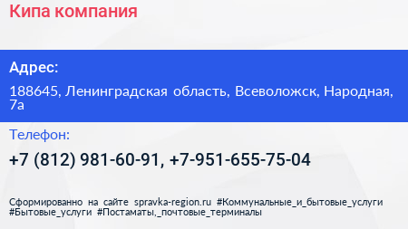 Для связи с организацией воспользуйтесь номером телефона: +7 (812) 981-60-91, +7-951-655-75-04. Пн: c 09:00-20:00, Вт: c 09:00-20:00, Ср: c 09:00-20:00, Чт: c 09:00-20:00, Пт: c 09:00-20:00, Сб: выходной, Вс: выходной, вы можете обратиться в эту организацию.