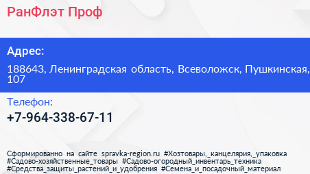 РанФлэт-Проф по адресу 188643, Ленинградская область, Всеволожск, Пушкинская, 107 в дальнейшем Организация, размещена в следующих категориях: