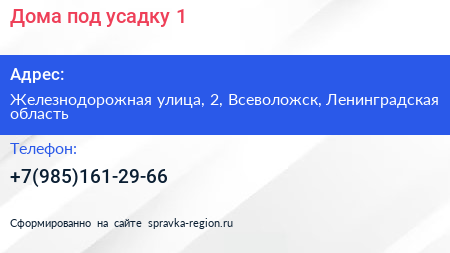 Дома под усадку 1 по адресу Железнодорожная улица, 2, Всеволожск, Ленинградская область в дальнейшем Организация, размещена в следующих категориях: