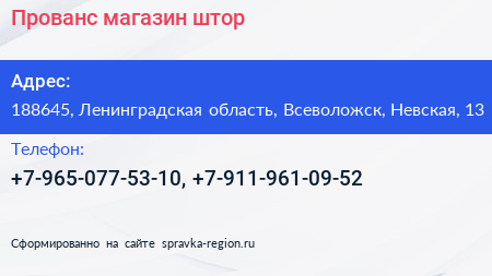 Прованс, магазин штор по адресу 188645, Ленинградская область, Всеволожск, Невская, 13 в дальнейшем Организация, размещена в следующих категориях:
