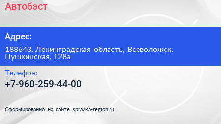 Автобэст по адресу 188643, Ленинградская область, Всеволожск, Пушкинская, 128а в дальнейшем Организация, размещена в следующих категориях: