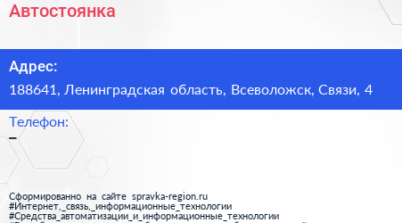 Автостоянка по адресу 188641, Ленинградская область, Всеволожск, Связи, 4 в дальнейшем Организация, размещена в следующих категориях: