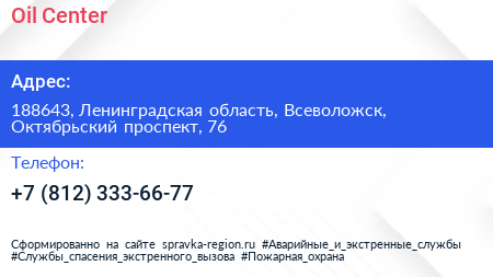 Oil Center по адресу 188643, Ленинградская область, Всеволожск, Октябрьский проспект, 76 в дальнейшем Организация, размещена в следующих категориях:
