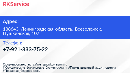 RKService по адресу 188643, Ленинградская область, Всеволожск, Пушкинская, 107 в дальнейшем Организация, размещена в следующих категориях: