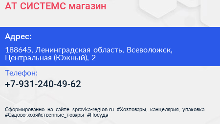 АТ СИСТЕМС, магазин по адресу 188645, Ленинградская область, Всеволожск, Центральная (Южный), 2 в дальнейшем Организация, размещена в следующих категориях: