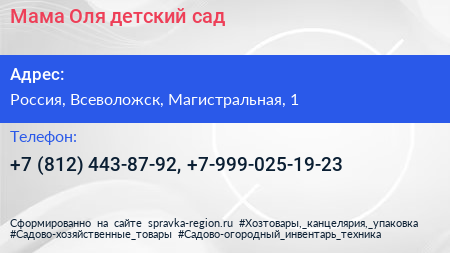 Мама Оля, детский сад по адресу 1, Магистральная улица, Щеглово, Щегловское сельское поселение, Всеволожский район, Ленинградская область, Северо-Западный федеральный округ, 188676, Россия в дальнейшем Организация, размещена в следующих категориях: