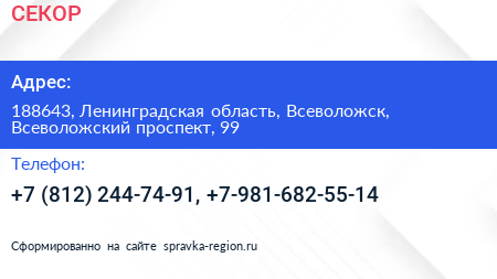 СЕКОР по адресу 188643, Ленинградская область, Всеволожск, Всеволожский проспект, 99 в дальнейшем Организация, размещена в следующих категориях: