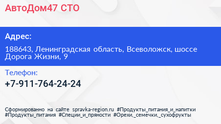 АвтоДом47, СТО по адресу 188643, Ленинградская область, Всеволожск, шоссе Дорога Жизни, 9 в дальнейшем Организация, размещена в следующих категориях: