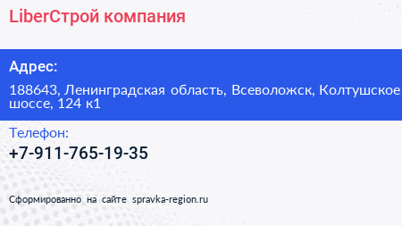 LiberСтрой, компания по адресу 188643, Ленинградская область, Всеволожск, Колтушское шоссе, 124 к1 в дальнейшем Организация, размещена в следующих категориях: