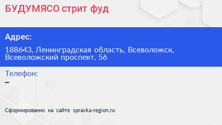БУДУМЯСО, стрит-фуд по адресу 188643, Ленинградская область, Всеволожск, Всеволожский проспект, 56 в дальнейшем Организация, размещена в следующих категориях: