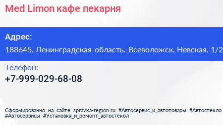 Med Limon, кафе-пекарня по адресу 188645, Ленинградская область, Всеволожск, Невская, 1/2 в дальнейшем Организация, размещена в следующих категориях: