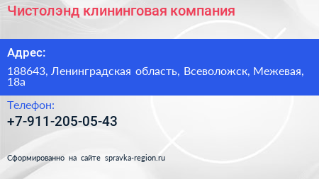 Чистолэнд, клининговая компания по адресу 188643, Ленинградская область, Всеволожск, Межевая, 18а в дальнейшем Организация, размещена в следующих категориях:
