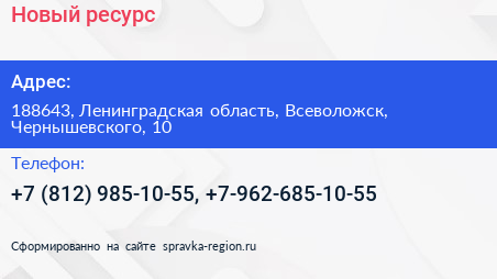 Новый ресурс по адресу 188643, Ленинградская область, Всеволожск, Чернышевского, 10 в дальнейшем Организация, размещена в следующих категориях: