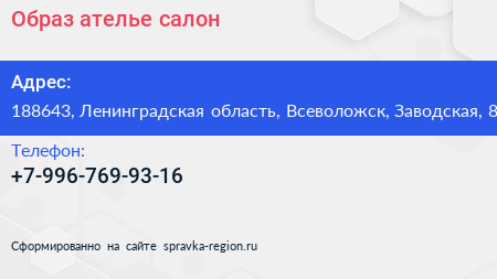 Образ, ателье-салон по адресу 188643, Ленинградская область, Всеволожск, Заводская, 8 в дальнейшем Организация, размещена в следующих категориях: