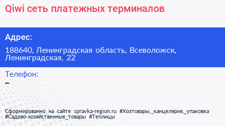 Qiwi, сеть платежных терминалов по адресу 188640, Ленинградская область, Всеволожск, Ленинградская, 22 в дальнейшем Организация, размещена в следующих категориях: