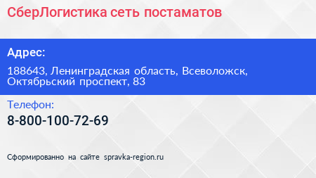 СберЛогистика, сеть постаматов по адресу 188643, Ленинградская область, Всеволожск, Октябрьский проспект, 83 в дальнейшем Организация, размещена в следующих категориях: