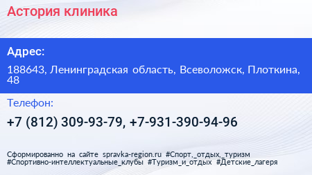 Астория, клиника по адресу 188643, Ленинградская область, Всеволожск, Плоткина, 48 в дальнейшем Организация, размещена в следующих категориях: